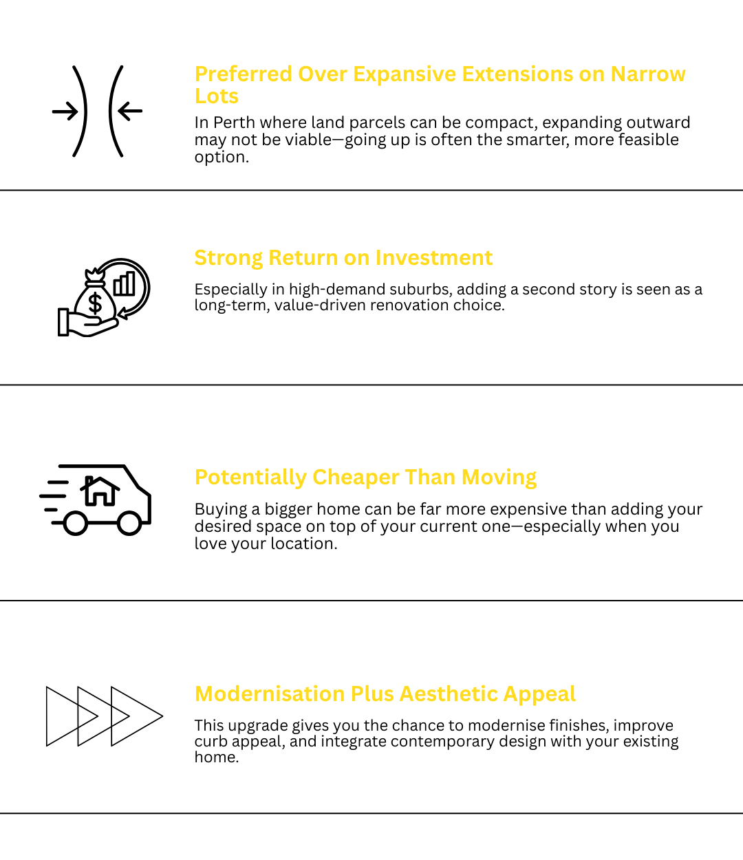 Absolutely. Modular second storeys are popular in Perth for their speed, lower site disruption, and cost predictability.